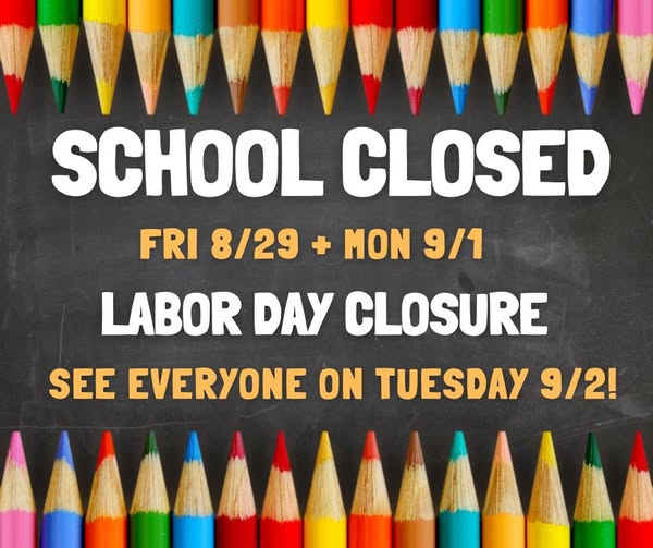 📌 Reminder: No school Friday, Aug 29 & Monday, Sept 1 for Labor Day 🇺🇸 Enjoy the long weekend, Lighthouse families! ✨ We’ll see you back on Tuesday, Sept 2! 📚✏️ (fb)