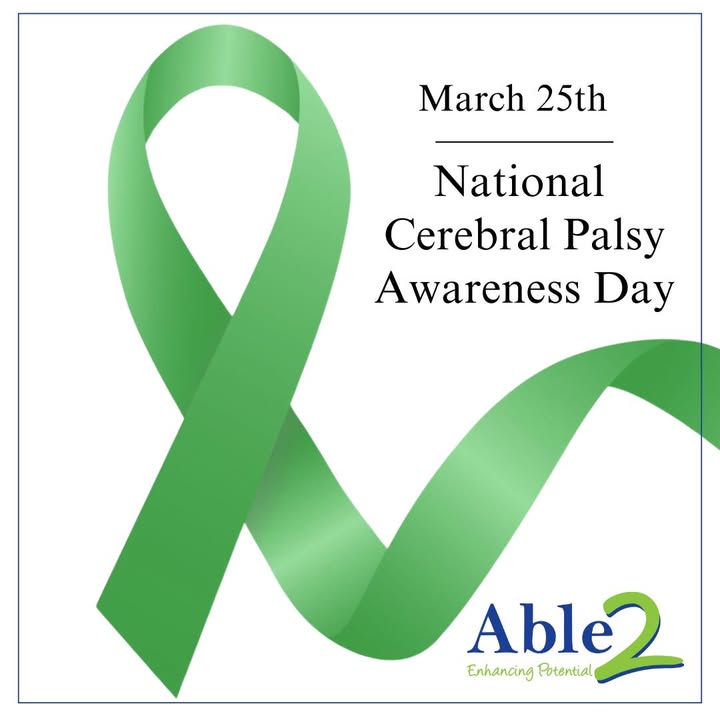 Per the Cerebral Palsy Foundation - since 2006, March 25th has been designated as National Cerebral Palsy Awareness Day. This day was created as a national awareness day to focus on the lack of research and progress in the treatment of Cerebral Palsy despite CP being the most common lifelong motor disability. Here are 5 ways to participate on National Cerebral Palsy Awareness Day: * Wear green: The official color of the cerebral palsy awareness ribbon, it symbolizes growth and resilience. *Use #GoGreen4CP on social media: Share facts, stories, and advocacy efforts to spread awareness. *Support CP-focused organizations, like Able2!: Donate or volunteer to help fund research, assistive technology, and community programs. https://able-2.org/donate/ *Advocate for accessibility: Encourage local businesses, schools, and workplaces to improve accessibility for individuals with CP. *Educate others: Share information about what causes CP and the importance of early intervention and lifelong care. #Able2 #GoGreen4CP (fb)