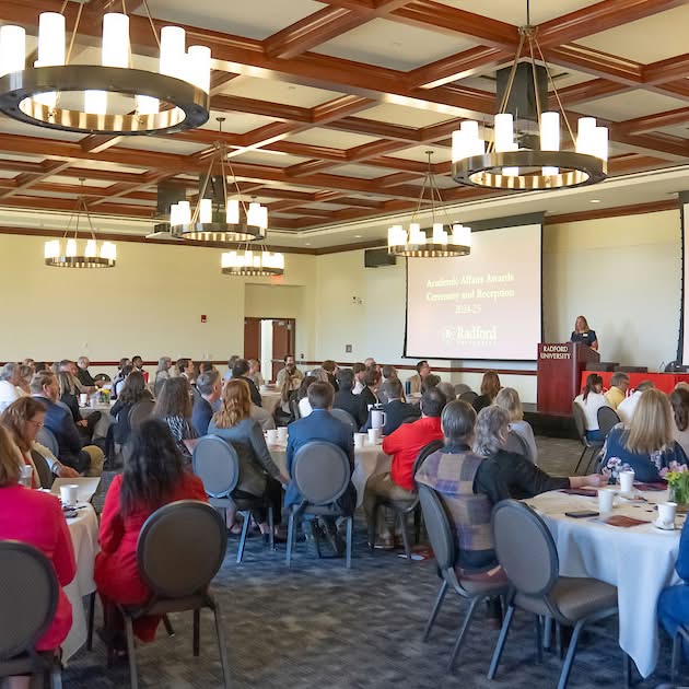 Radford University recognized an array of its most accomplished faculty and staff members at the 2024-2025 Academic Affairs Awards Ceremony. “I thank you all for your active participation. Yes, in the classroom with your students, but also as a community of scholars,” President Bret Danilowicz said. (fb)