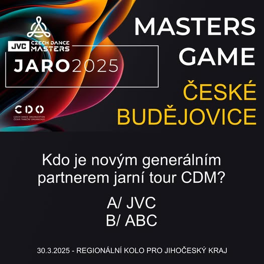 👾👾👾 DNES HRAJEME MASTERS GAME 👾👾👾 POZOR - DNES SOUTĚŽÍME O 1 VOLNOU VSTUPENKU NA REGION V ČESKÝCH BUDĚJOVICÍCH 🤩 Zapoj se a vyhraj volnou vstupenku na soutěž pro sebe, nebo třeba pro svého fanouška! Ještě dnes večer vyhlásíme vítěze, tak lajkuj, sdílej a odpověz správně na otázku - můžeš vyhrát vstupenku na svou oblíbenou soutěž Czech Dance Masters ❤️ PRAVIDLA MASTERS GAME: ✔️Do komentářů napiš správnou odpověď na danou soutěžní otázku 💪 ✔️Dej tomuto příspěvku LIKE 💪 ✔️Sdílej tento příspěvek VEŘEJNĚ na svém profilu 💪 Už dnes ve 21:00 vylosujeme jednoho z Vás, který odpoví správně na soutěžní otázku, a zároveň splní pravidla soutěže. Výherce získá po jedné vstupence. Vstupenka na Vás bude čekat u vstupu. NEVÁHEJ A ZAPOJ SE DO SOUTĚŽE I TY 🫵 Pořadatelem soutěže je Czech Dance Masters. Soutěž není žádným způsobem provozována, sponzorována nebo spojena s Instagramem a ani Facebookem a Instagram či Facebook za ni neručí. #czechdancemasters #mastersgame #volnavstupenka #soutez (fb)