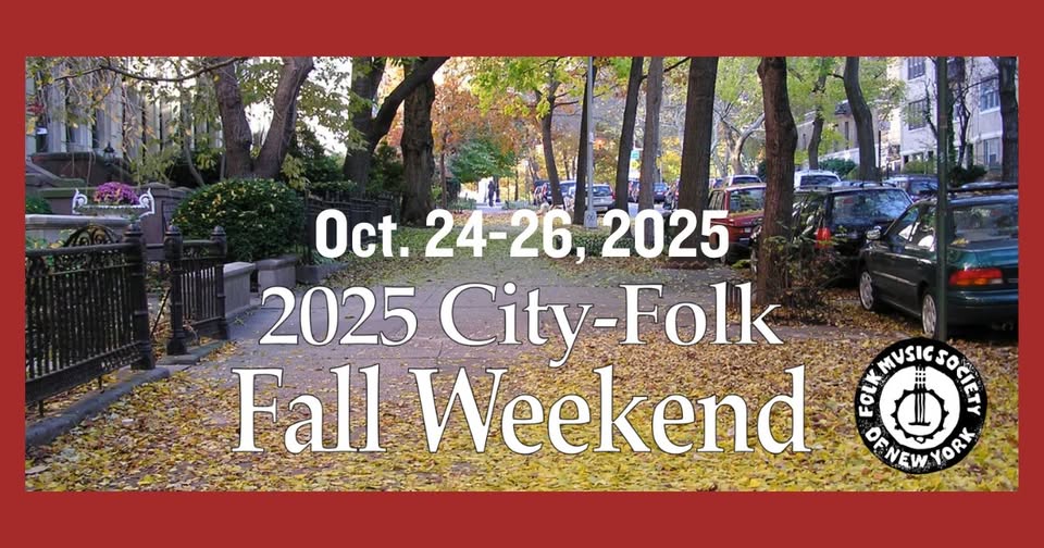 FMSNY’s 2025 City-Folk Fall Weekend will be Oct. 24-26, 2025 – our first-ever NYC-based folk music weekend! Events will take place at several locations in Manhattan, making it a two-stop subway series of concerts, workshops, jams, and more! Tickets: fmsny-city-folk-fall-weekend.eventbrite.com Workshops and performances by Joy Bennett, Brian Dolphin, Chris Koldewey, Elizabeth LaPrelle, Ken Schatz, Twa Corbies (Alison Kelley and A.J. Wright) Come celebrate folk music in NYC with a weekend full of workshops, singing and jamming, and a concert - everything from work-songs, to ballads, to vocal & instrumental technique, to songwriting. Come for the whole weekend, a single day, or just one class - whatever works best for you. All tickets come with a discount code for 5% off Folk Music Society song notebooks and shirts! Check your confirmation email for details. Schedule: FRI: 7 PM Reception - Wheeltapper Pub & Patio, Between Lexington & 141 E 44th St, 3rd Ave, New York, NY 10017 SAT: 1 – 11 PM workshops & concert - The Church of St Paul & St Andrew, 263 W 86th St, New York, NY 10024 SUN: 12-2 PM workshops at 2nd Floor of Ripley-Greer Studios, 131 W 72nd St # 3205, New York, NY 10023 and 2-6 PM workshops at The Church of St Paul & St Andrew , 263 W 86th St, New York, NY 10024 We have ticket packages to make it easy to experience the whole weekend or just a class or two. All are available on Eventbrite: fmsny-city-folk-fall-weekend.eventbrite.com “Full weekend” - admission to all our events, including the Saturday concert! “Day Sat.” or “Day Sun.” - lets you in for one full day, but concert tickets need to be purchased separately. “Individual class” tickets - for one workshop or performance each (Saturday concert excluded). Purchase as many as you want to pick and choose your specific events or upgrade to a day or full weekend pass to enjoy the savings and even more flexibility. “Concert” tickets - are for, you guessed it, adding the Saturday all-staff concert to the events it is not packaged with. Accessiblity Varies by venue. PS: Don’t worry, we haven’t abandoned our weekend getaways; we are working to make them better than ever for the future! (fb)