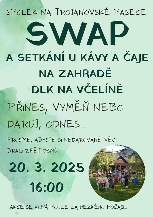 !!! Nezapomeňte, že už zítra se můžete přijít rozloučit se zimou darováním čehokoliv nepotřebného a zároveň přivítat jarní rovnodennost ozdravným pokrmem "pučálkou" k nám na včelín!!! 🫛 🫖 ☕ Máte chuť si zavyměňovat? Máte chuť se sejít? Přijďte za námi na včelín! ☕🌿👚🤿🏀🚗 (fb)