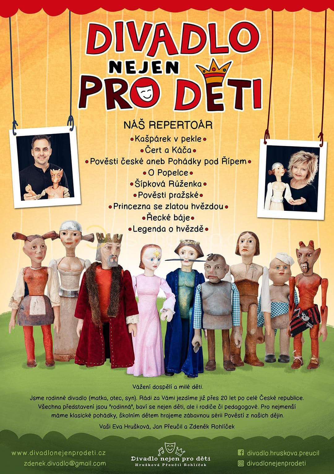 Divadlo bylo založeno herci Evou Hruškovou a Janem Přeučilem, kteří jsou manželé. Jejich syn Zdeněk Rohlíček se také aktivně podílí na činnosti divadla. Představení jsou koncipována tak, aby bavila nejen děti, ale i dospělé. Divadlo pravidelně cestuje po celé České republice a nabízí širokou škálu představení, od klasických pohádek až po vzdělávací série o českých pověstech.
