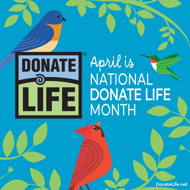 Did you know April is National Donate Life Month? It aims to spread awareness about organ, eye and tissue donation and honor those who gave the gift of life. Some ways to participate this month: Give hope and help save lives by registering your decision to be an organ, eye and tissue donor at your local DMV, on RegisterMe.org or in your iPhone Health App. Share the Donate Life message by educating others about how their generosity can help save and heal lives. Show your blue and green colors in support of the Donate Life message and mission on April 11, 2025 for National Donate Life Blue & Green Day. #breathingnewlife #lungtransplant #OrganDonation #donatelifemonth #letlifesing #DonateLife (fb)