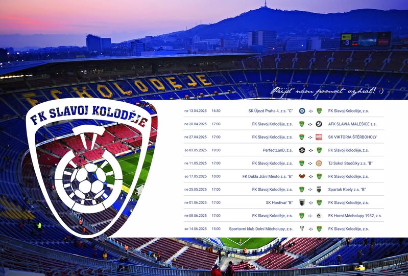 [1] https://www.fkslavojkolodeje.cz [2] https://www.fkslavojkolodeje.cz/rozpis-turnaju/ [3] https://www.fotbal.cz/souteze/club/club/95c9c084-67c7-4e75-9921-f015a234ecb6 [4] https://www.sportmap.cz/club/fotbal/fk-slavoj-kolodeje [5] https://www.fotbalpraha.cz/tym/73-fk-slavoj-kolodeje-z-s