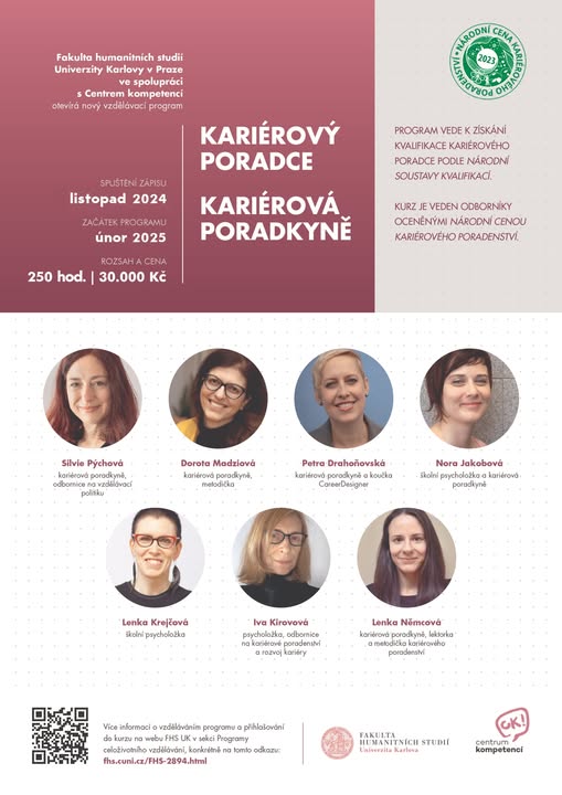 Nepřihlásili jste se ještě do 3. běhu vzdělávacího programu Kariérový poradce / kariérová poradkyně, který realizuje Centrum kompetencí ve spolupráci s Fakulta humanitních studií Univerzity Karlovy a který byl oceněn v loňském roce Národní cenou kariérového poradenství? Registrace je otevřena do 10. ledna 2025, takže je nejvyšší čas o tom uvažovat. Více informací a odkaz na registraci najdete na webových stránkách fakulty: https://fhs.cuni.cz/FHS-2894.html (fb)