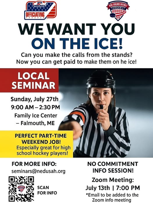 Ever thought about reffing? Why not get paid to polish your skating skills? It's a great way to see the game from a new angle and up your game!! (fb)