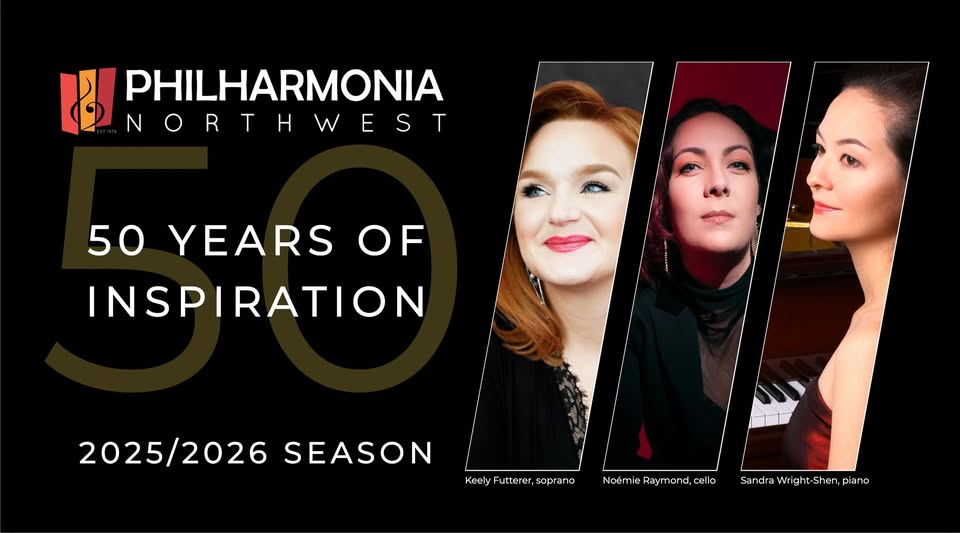 Philharmonia Northwest's 50th season is here! Join us as we honor the musicians and community who've held our orchestra's spark for the past half century, while taking bold steps into the future. Our 2025-26 Season, “50 Years of Inspiration,” touches every corner of chamber orchestra repertoire from the last 250 years, showcasing new works and stunning guest artists from around the country and abroad. Together we’ll explore Japan through the eyes of Gustav Holst, hear Mozart through the ears of Ravel and Tchaikovsky, read the letters of Georgia O’Keefe through a stunning setting by Pulitzer winner Kevin Puts, and much, much more. Subscriptions on sale now at https://philharmonianw.org/ (fb)