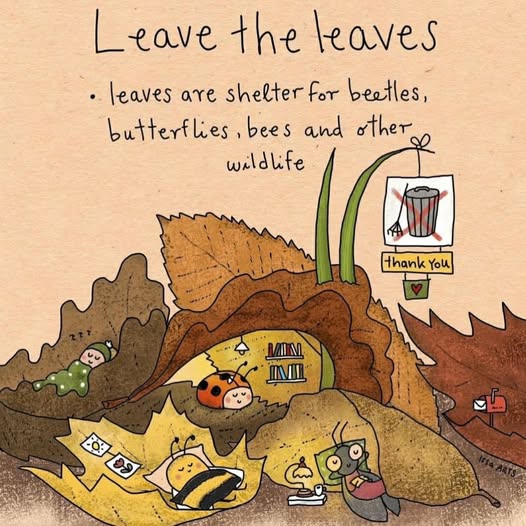 A friendly little remind. 🍂🐌🍁🐜🍂🦗🍁🐛🍂 Artwork by Issa Arts #Leavetheleaves #fallyardcare (fb)