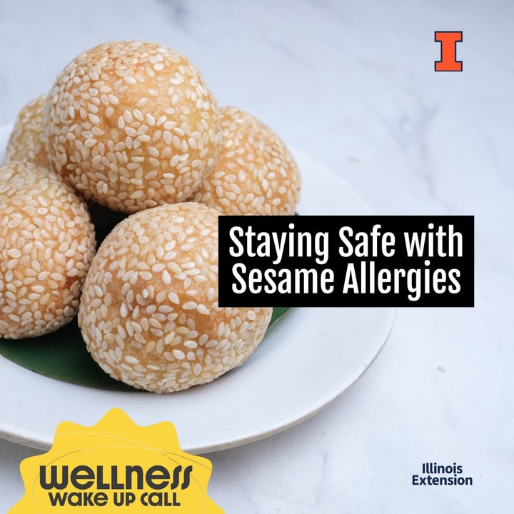 Did you know sesame is now the 9th most common food allergen for both kids and adults? It can hide in unexpected places—from baked goods to sauces—making it a serious concern for those with allergies. 🎧 Tune in to our latest podcast episode: "Staying Safe with Sesame Allergies" We’re sharing essential tips to help you spot sesame in your food and keep your family safe. https://extension.illinois.edu/podcasts/wellness-wake-call/staying-safe-sesame-allergies (fb)