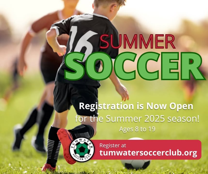 Summer is just around the corner but Summer Soccer Season Registration is HERE! The summer season runs June 25th through July 31. Most games happen during the week and begin after a few weeks of practices. We would love to have you join us for some exciting summer soccer fun! https://tumwatersoccerclub.demosphere-secure.com/_registration (fb)