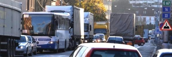 28. 8. 2014 - Náchod opět ve smogu. Skoro nehybné kolony v obou směrech od Vysokova až po Běloveskou ulici u Polských hranic.