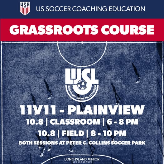 Attention coaches 🚨 Join us for the U.S. Soccer Grassroots 11v11 Course next week! https://lijsoccer.com/event/us-soccer-11v11-grassroots-course-plainview/ (fb)