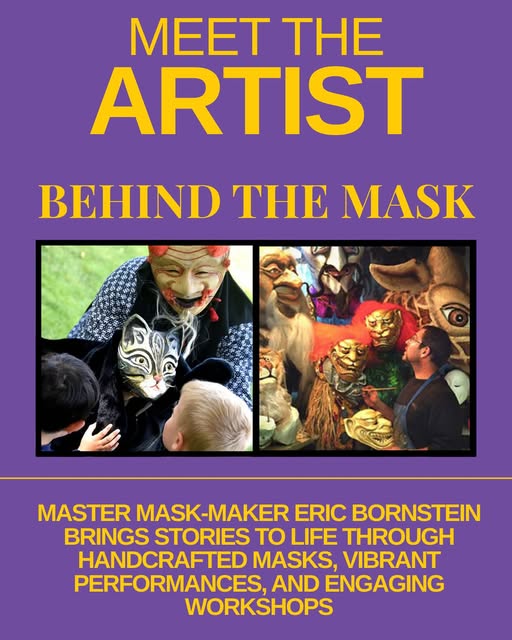 🎭Meet Eric Bornstein - Master Mask Maker. Founder of @behindthemaskstudio, Eric’s performance of Cat Mountain combines mask theatre, original music and traditional Japanese song to transform a classic folktale into an unforgettable experience. See it live for FREE as part of our Artist Showcase on August 28th! 📍Lower Mills Branch, @bplboston ⏰ 11:00 AM - 12:30 PM #artsshow #artseducation #artsperformance #masktheatre (fb)