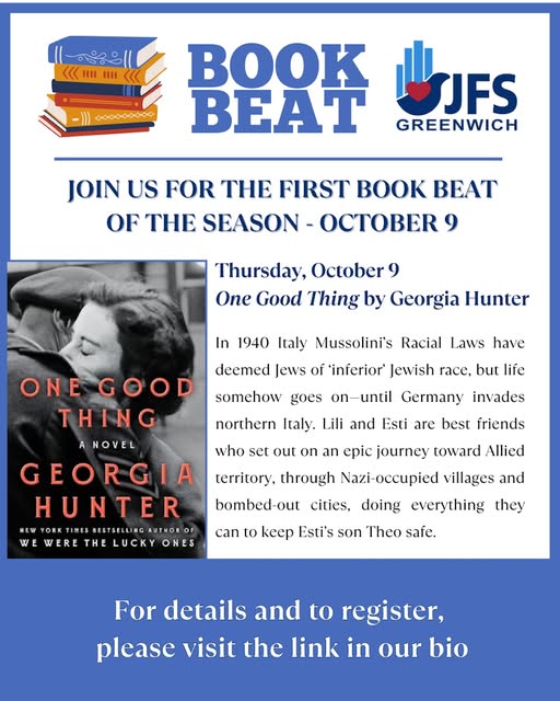 📚 Book Beat is back! Join us on Thursday, October 9 as we kick off a new season of great reads and thoughtful conversation, led by facilitator Judi Margolin. 🔗 Link in bio for details and to register or click here: https://www.jfsgreenwich.org/bookbeat2025 #BookBeat #JFSGreenwich #CommunityReads #JewishFamilyServices #BookClub (fb)