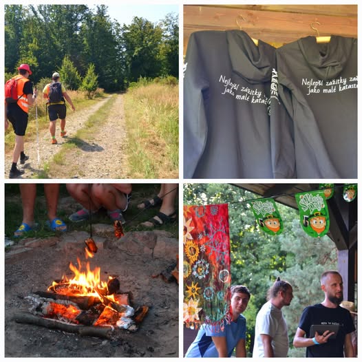 Tak už jsme všichni z kurzu doma - dospáváme nedostatek spánku a dovstřebáváme všechny zážitky! Děkujeme všem účastníkům i lektorům za nabitý týden na kurzu F.A.K.A.P. aneb neztrácej hlavu. #žtj #kurz2025 #zážitkovápedagogika #FAKAP #zážitkovka #žtj_tábor #ztj U příspěvku je koláž 4 fotek z kurzu: dva účastníci na lesní cestě; mikiny s nápisem "Nejlepší zážitky začínají jako malé katastrofy"; táborák, nad kterým se opékají buřty a tři lektoři ve nazdobeném altánu. (fb)