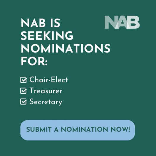 Calling all NAB members - nominations are now open for the offices of Chair Elect, Treasurer, and Secretary! Do you know someone who would be interested in serving in a leadership position in NAB? Learn more and submit your nominations here: https://www.nabweb.org/state-representative/member-resources/2026candidateelections (fb)