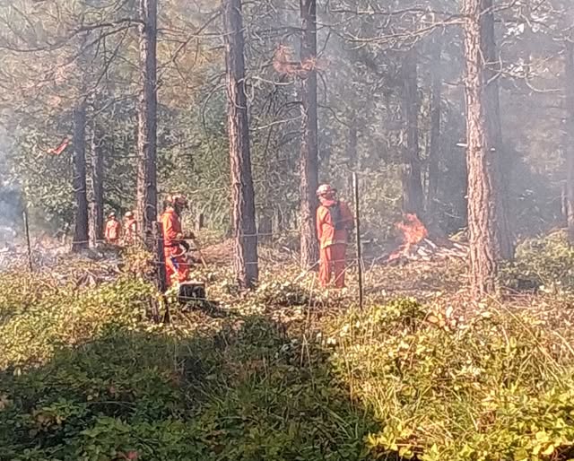 CalFire has lifted the burn ban. You can now burn piles if you have the two necessary permits from Calfire and NCUAQMD. Now that the ban is lifted, CalFire's Trinity River Conservation Camp crew is burning the piles around the airport. Thanks for making our community safer guys! (fb)