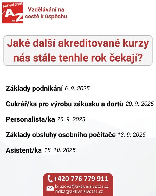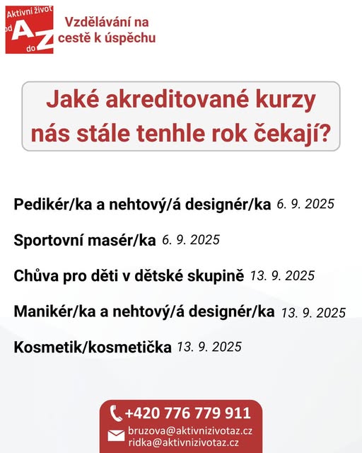 Pro více informací o všech akreditovaných kurzech utíkejte na web aktivnizivotaz.cz (fb)