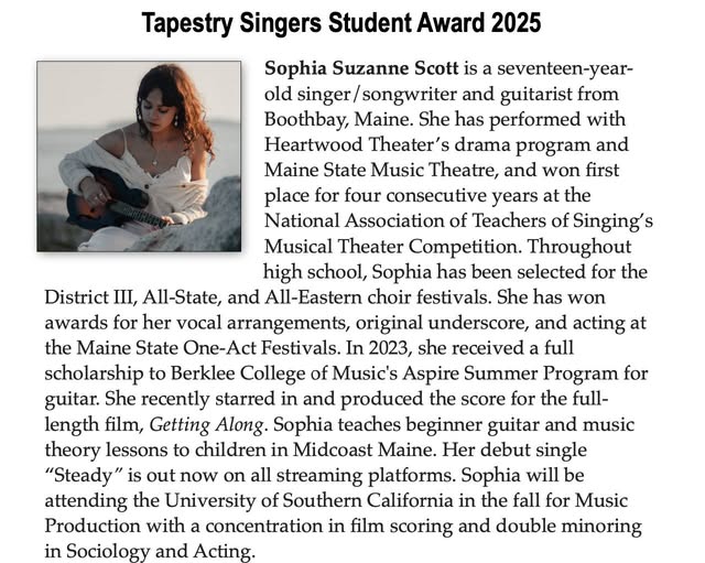 Congratulations to Sophia Scott, our 2025 award winner! (fb)