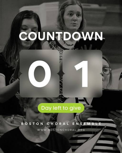 One day left to help BCE meet our fundraising goal! Your generosity will be matched until our concert tomorrow. Support us today and help us advance our mission to keep bringing innovative choral music to audiences across the Boston region. https://www.bostonchoral.org/donate . . . . . #BCE #BostonChoralEnsemble #BostonChoirs #BostonChoir #SupportTheArts (fb)