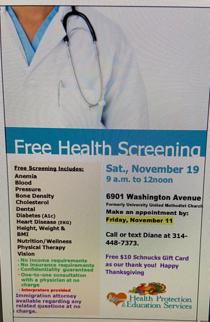 We provide free monthly health screening services and health education to the underserved and uninsured that live in St. Louis, MO. HPES provides free health screening services and health education to the underserved and uninsured that live targeted service areas in St. Louis City, where there is a dearth of medical facilities and private physician offices. SEE SCHEDULE O