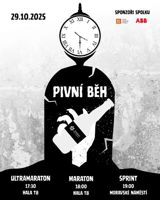 🎃 PIVNÍ BĚH 2025 – HALLOWEEN EDITION! 💀🍺 Tradiční akce, na kterou se těší celý FEKT – legendární Pivní běh je zpět! 🍻 Každý, kdo dorazí v masce, získá náskok… 🏆🍺 📅 Kdy: 29. 10. 2025 📍 Kde:👇 🍻 ULTRAMARATON – start 17:30–18:00 (Hala T8, FEKT) 🍺 MARATON – start 18:00–19:00 (Hala T8, FEKT) ⚡ SPRINT – start 19:00–20:00 (Moravské náměstí, před PARQ espresso barem) 👥 Týmy po 3 (případně 2) obíhají hospody, pijí velké pivo, plní úkoly a bojují o slávu a titul vítěze! Cíl? 👉 U Dřevěného Orla, kde se rozhodne, kdo ovládl letošní běh! 🏁 📋 Na každé zastávce vás čeká člen SPS, který potvrdí váš výkon. Každá vteřina rozhoduje – rychlost i strategie hrají roli! ⏱️🔥 💸 Vem si hotovost (doporučeno alespoň 500 Kč) – pivo si každý platí sám. 🕓 Doražte 15 minut před startem, ať stihneme seřadit týmy a zodpovědět dotazy. 🚨 Registrace se uzavírá v úterý 28. 10.! 👉 Odkaz na přihlášení najdeš v biu! Těšíme se na všechny pivní hrdiny! 🍻💀 Studenti pro Studenty #pivnibeh2025 #beerlover #beerrun #halloween #brno #spsfekt #fekt #vut #studentiprostudenty (fb)