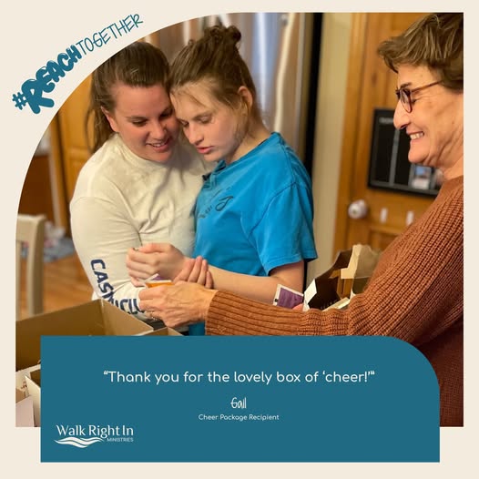 "Thank you for the lovely box of 'cheer!" -Gail (Cheer Package Recipient) Walk Right In Ministries supports and uplifts families in several different capacities, one being Cheer Packages. Several packages went in the mail for families in our community this week! #disabilityministry #specialneedsfamily #familycaregiver #caregiving #disability #disabilityministry #nonprofit #specialneedsmom #specialneedsdad #specialneeds (fb)