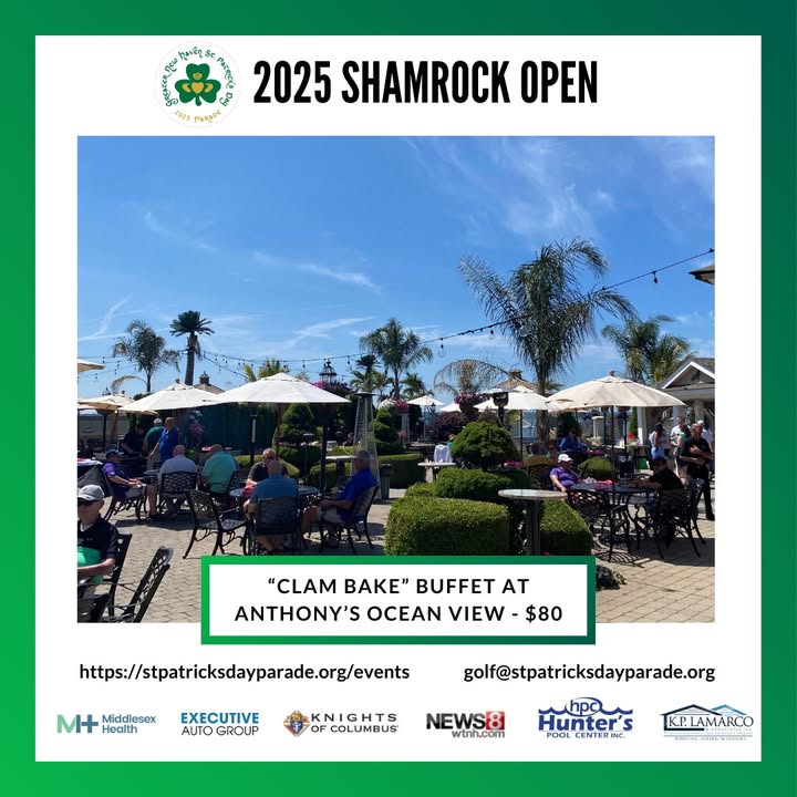 Can't make it to golf with us on June 23rd, but still want to join in the fun? Come join us down at Anthony's Ocean View for a delicious clam bake buffet at 2 PM. Delicious food, great drinks, and an unbeatable view! https://www.zeffy.com/en-US/ticketing/2025-shamrock-open-registration-and-sponsorship (fb)