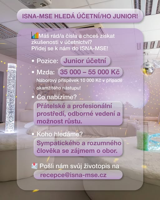 🔎Hledáme kolegu účetní/ho juniora k nám do ISNA-MSE. 🤍Přátelské a profesionální prostřední v neurosenzorickém centru v Ostravě! . #HledámeÚčetní #PráceÚčetní #Účetnictví #Finance #Kariéra #NabídkaPráce #Účetní #JobOffer #HledámeTebe #PráceSnů #Fakturace #Daně #Ekonomika #Personalistika #ÚčetníPraxe #PrácevKanceláři #HPP #Brigáda #VolnáPozice #ÚčetníPoradenství #ÚčetníFirma #ÚčetníSlužby (fb)