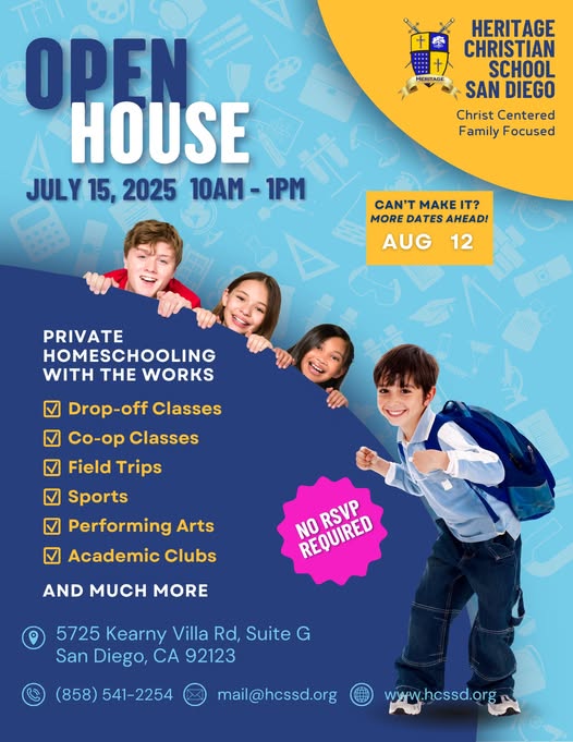 Happening tomorrow! #HeritageChristianSchoolSanDiego #HomeschoolSupport #ChristianHomeschool #homeschoolpsp #SanDiegoHomeschool (fb)