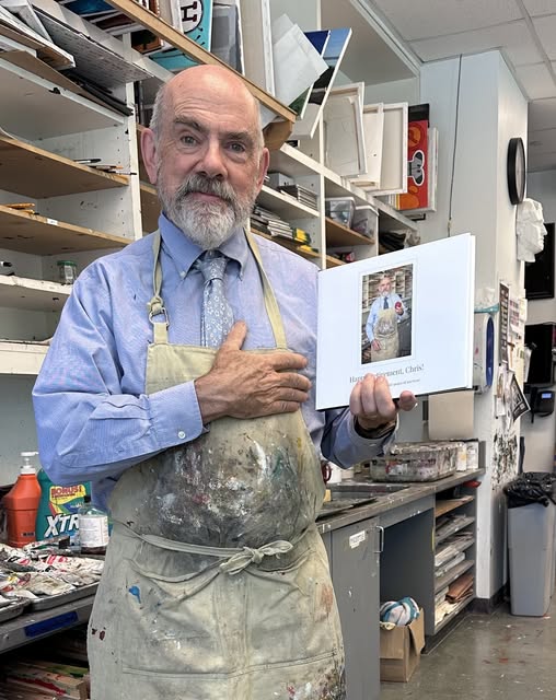 On Friday, May 2 at the annual Haverford School Arts Festival, art teacher Chris Fox was honored for 43 years of service to The Haverford School by family members, colleagues, friends, and former students. At the celebration the School shared with him a book that included reflections, pictures, and notes from the community that he so positively affected. Commencement marked Chris's retirement, but he wanted to share one last message with the Haverford Community: "Friends, I wish I could respond to each of you who have spoken with me, written to me, and contributed to the book I was given. I am overwhelmed with gratitude. Your well wishes for my retirement, stories of our past together, and even quotes mean more than you may ever know. My heart is full. Thank you for those gifts." Chris Fox’s impact on The Haverford School community is immeasurable, and his legacy will live on through the countless lives he has touched. We thank him for his decades of dedication, inspiration, and heart—and we wish him all the best in his retirement. (fb)