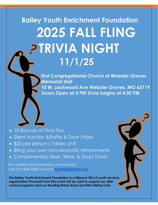 A Nonprofit Organization 0123456789 BYEF 3144569838 infobyefstl. com HOME ABOUT US OUR PROGRAMS NEWS EVENTS DONATIONS REPORTS FORMS CONTACT More. BAILEY YOUTH ENRICHMENT FOUNDATION After School The after school enrichment program consists of four to six hour meetings two to three times a week. During each .