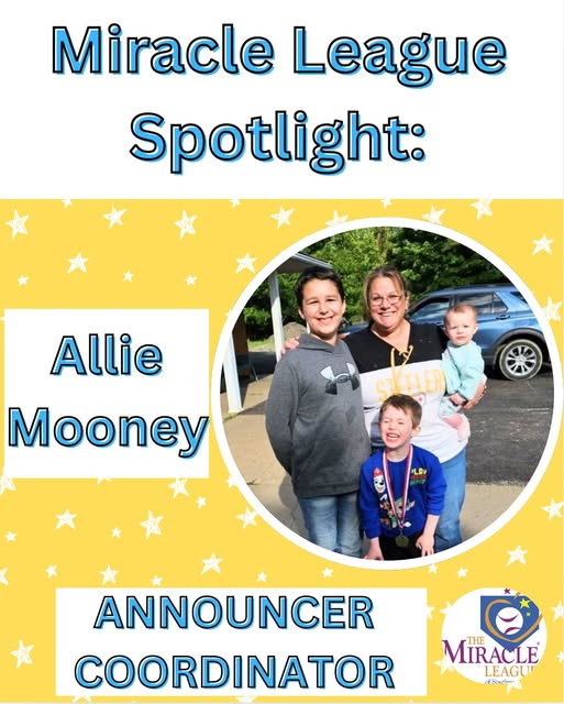 We would like to continue our staff recognition by spotlighting our announcer coordinator, Allie Mooney!! Allie Mooney has been a dedicated volunteer with the Miracle League for the past three years and recently started serving as the Announcer Coordinator. Though she does not have any children participating, her passion for the league is fueled by the joy she brings to others. For Allie, nothing beats the moment an athlete steps up to bat or crosses home plate with a smile—those moments are the highlight of her weekend. Her favorite tradition? Leading the crowd in a rousing rendition of Take Me Out to the Ballgame - true Miracle League classic! A fun fact about Allie: She was a volunteer tour guide on the VIP shuttle bus for the 1994 MLB All-Star Game in Pittsburgh! Thank you Allie for all that you do for the Miracle League! We appreciate you!! 🎤❤️💛⚾️ (fb)