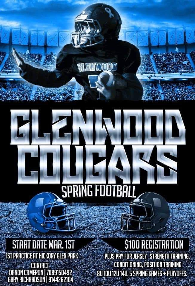NIUYFL LEAGUE The Cougars are now part of the Northern Illinois United Youth Football League. That means we are now anUnlimited Weighted football program as well as AgeBased. No child should be left behind due to weight come learn football fundamentals with the one and only COUGARSSSSSSS. REGISTRATION IS NOW OPEN FOR 2024 SCROLL DOWN FOR LINK PARENT REMINDER Just a few reminders no metal or screw on cleats for football no earrings beads for cheer all equipment issuedby Glenwood Cougarsshouldbe returned in the condition itwas given.