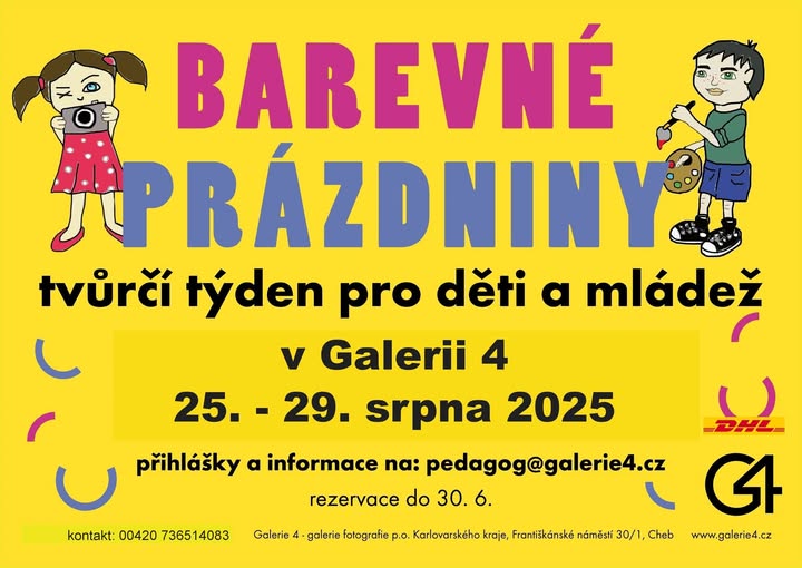 🙋♀️ BAREVNÉ PRÁZDNINY S G4 Galerie 4 - galerie fotografie připravila na letní prázdniny tvůrčí týden pro děti od 7 let a mládež nazvaný Barevné prázdniny. Konat se bude v termínu od 25. do 29. srpna. ℹ️ Bližší informace a přihlášky na: pedagog@galerie4.cz (fb)