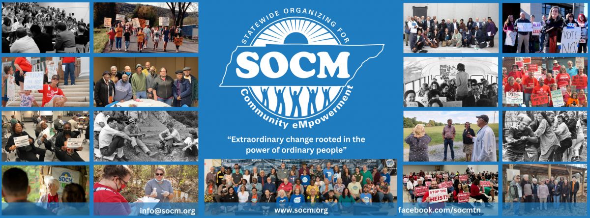 Home About SOCM Current Work Media JoinRenew Give Resources Jobs Calendar Contact More Statewide Organizing forCommunity eMpowerment We believe that extraordinary change is rooted in the power of ordinary people. SOCM is a 53yearold memberdriven organization dedicated to empowering Tennesseans in their efforts to have a greater voice in determining their own future. Throughout our history our members have taken on local state and national campaigns to make lives better for everyday people. Weve found time and time again that real change requires long lasting groups that are rooted in relationship and built on our own experiences.
