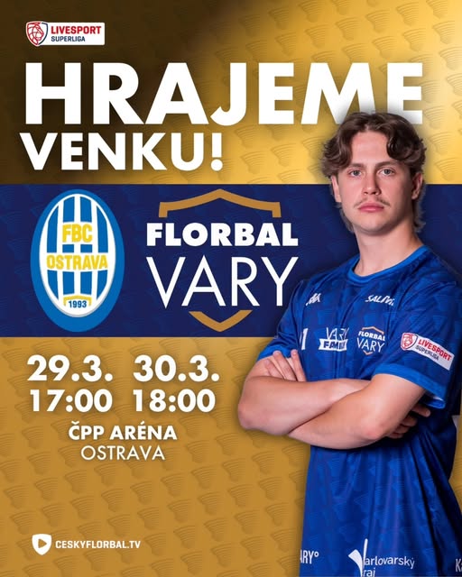 🔥 | HRAJEME VENKU Start do série A-týmu nevyšel a po prvním víkendu tak prohrává s Ostravou 0:2. Nyní se série přesouvá o 500 kilometrů na druhý konec republiky, kde muži budou bojovat o srovnání série a vrácení zpět na domácí palubovku. Držte klukům palce, pokud se nechystáte na dlouhý výjezd, můžete fandit klukům aspoň na ceskyflorbal.tv. #varyfamily #florbalvary #spolecnezavitezstvim #superliga (fb)