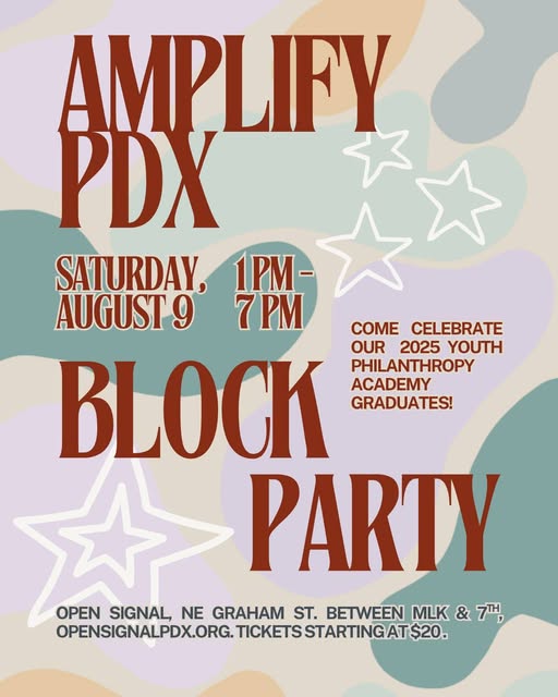 Are you coming to our Block Party tomorrow? 👀 Connect with the 25+ grassroots orgs on the frontlines of social justice issues in Portland at AMPLIFY PDX—a community resource block party & fundraiser hosted by @opensignalpdx ! 🤩 🎉 There’ll be: live music, teach-ins, storytelling, games, prizes, and food + bevs from local BIPOC-owned businesses. 🤍 Plus, we'll be celebrating Next Up's very own 2025 Youth Philanthropy Academy cohort, who will be graduating on the main stage from 4:10 - 4:30! Let’s show out, celebrate community and build collective power together. See you Saturday! 🥳 🔗 Click here for tickets: https://www.opensignalpdx.org/calendar/event/9003/ 🗓️ Saturday, August 9th ⏰ 1pm–7pm 📍 Open Signal (2766 NE MLK Jr. Blvd) 🧑🧑🧒🧒 All Ages + Family Friendly 🎟️ Sliding scale tickets starting at $20 + no one turned away for lack of funds. (fb)