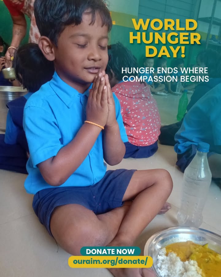 On this World Hunger Day, let’s remember that a simple meal can be a blessing for millions. Every child deserves the comfort of a full stomach and the hope that comes with it. Hunger is not just a lack of food, it's a lack of opportunity, dignity, and care. By opening our hearts and lending a hand, we can be the reason someone smiles today. Let compassion lead the way to a world where no one goes to bed hungry. Your small act can make a big difference. 🍽️💛 Donate Now! ouraim.org/donate/ . . . #WorldHungerDay #EndHunger #ZeroHunger #FeedTheFuture #HungerAwareness #DonateForHope #CompassionInAction #NoChildHungry #FightHunger #OurAimFoundation (fb)