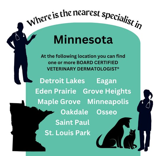 #DYK Interestingly, Minnesota does not have a state mammal to accompany its state bird, flower, fish, mushroom, and tree. You can find a BOARD CERTIFIED VETERINARY DERMATOLOGIST® across the United States and other countries including #Minnesota Dermatologists are specialists in treating skin disease, allergies, and ear disease. With additional training and experience in the treatment of skin diseases as well as internal medicine, immunology and allergy, they are a specialist in the diagnosis and management of animal skin, ear, hair, nail, hoof, and feather disorders. Try the “Find a Dermatologist” feature on our website to locate the most up to date list of dermatologists nearest to you. #ACVD #veterinarydermatology #dermatology #findavetderm #PetCare (fb)