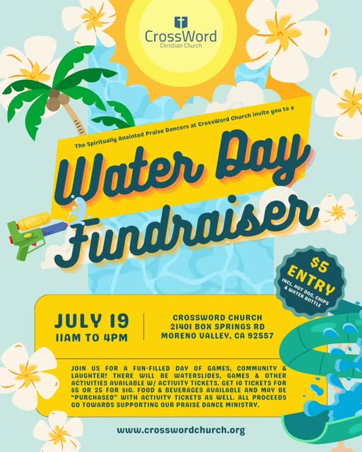 Join our Spiritually Anointed Praise Dancers for a Water Day Fundraiser this Saturday! Details included in the flyer. #community #CrossWordChurch #IE #church #MorenoValley #Riverside #fundraiser (fb)