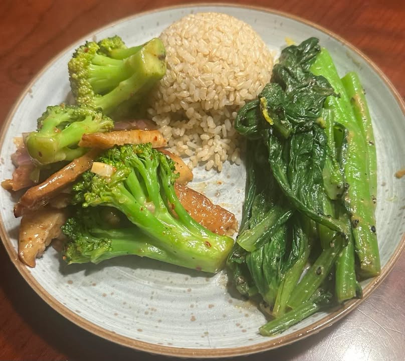 We have been eager to try the soy-based May-Wah nuggets we recently bought at the Asian Market, so May-Wah Nuggets and Broccoli are What's Cooking Wednesday! May-Wah Nuggets and Broccoli Ingredients: 8 oz May-Wah nuggets thawed and sliced 8 oz broccoli florets 4 cloves garlic, sliced 2 shallots, minced 1 tbsp mirin 1 tbsp tamari 1 tsp brown sugar 1 tbsp rice vinegar 1/2 tbsp corn starch 1/2 cup water 2 tbsp oil Directions: 1. Mix garlic, shallots, mirin, tamari, sugar, rice vinegar, corn starch and water together, set aside 2. Blanch broccoli 3. Heat oil in a wok on medium-high, add nuggets and cook until lightly browned. Add broccoli and cook for another minute. 4. Add corn starch mixture and cook for 1-2 minutes until thickened We served this dish with brown rice and blanched komatsuna (a Japanese green related to cabbage.) What are you cooking this Wednesday? (fb)