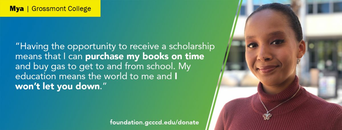 When you donate to the Foundation for Grossmont Cuyamaca Colleges you are making an investment inthe future. By donating to scholarships or a college program you directly impact students that need it most giving them the confidence they need to succeed in the classroom and in life. Your support makes a difference for students like these Roxio Pina This scholarship is an incredible gift that will allow me to continue to pursue my passion in Culinary Arts. Sometimes it can be easy to doubt if you are on the right track but life has a way of affirming your decisions and I couldnt be more grateful for this.