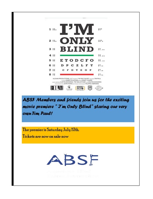 Come out and see Tim's movie premier! tickets on sale here: https://give.chicagolighthouse.org/event/im-only-blind-chicago-premiere/e688292 (fb)
