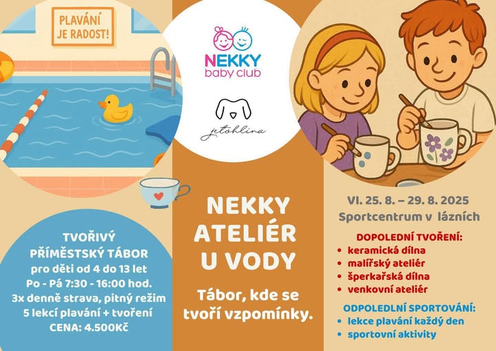 Poslední volné místa na posledním PŘÍMĚŠŤÁKU, poslední týden v srpnu 🎨 Nekky Ateliér: ✅ Každý den PLAVÁNÍ ✅ Tvoření – malba, šperky, hlína ✅ Návrat ke školnímu režimu s úsměvem ✅ Malá skupina, individuální přístup Pomůžeme dětem znovu naskočit do rytmu školy – přirozeně a hravě! Kapacita je omezená – rezervujte místo ještě dnes! 📅 Termín a cena v letáčku níže ✉️ Vice info: 736 520 494 (fb)