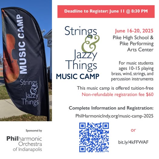 Only 2 days left to register for our Music Camp, which begins 2 weeks from today. June 11 is the deadline. Reg and Info at https://www.philharmonicindy.org/music-camp-2025 (fb)