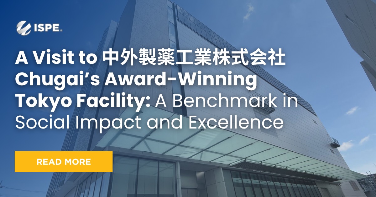 A message from Mike Martin, President and CEO, ISPE - In late May, I had the distinct pleasure of visiting 中外製薬工業株式会社 Chugai Pharmaceutical Manufacturing Co., Ltd.’s UK4 biological drug substance manufacturing facility in Tokyo, Japan—Category Winner of the 2024 ISPE Facility of the Year Awards (FOYA) in Social Impact. This visit was not only inspiring but also a powerful reminder of the innovation and dedication that define the future of pharmaceutical manufacturing. Read more in this iSpeak blog: https://bit.ly/4jyXFbb (fb)