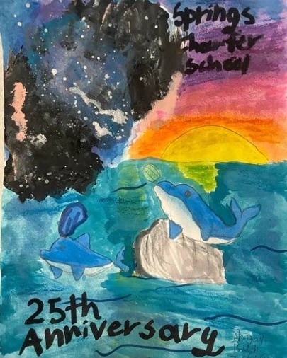 Abigail, a 5th grade student at the Vista Student Center, is our May Student Artist of the Month! Her beautiful ocean scene, featuring playful dolphins and a vibrant sunset, celebrates Springs’ 25th Anniversary with creativity and color. Great job, Abigail! #SpringsCharterSchools #PersonalizedLearning (fb)