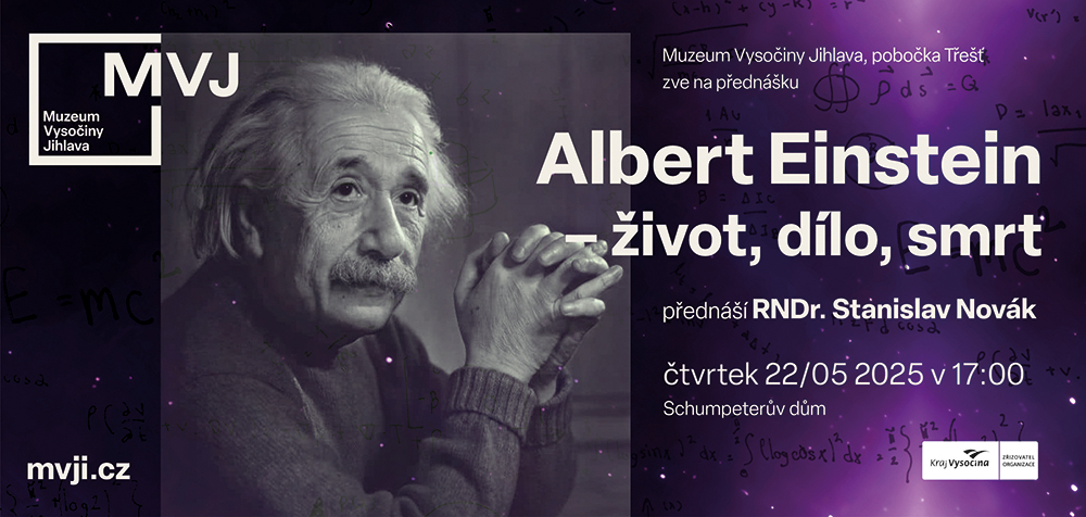 Zveme vás do třešťského muzea na další zajímavou přednášku. Ve čtvrtek 22. května v 17.00 h si s RNDr. Stanislavem Novákem zavzpomínáme na největšího vědce 20. století a člověka, který se stal symbolem lidské geniality. V Schumpeterově domě v Třešti, vstupné zdarma. (fb)